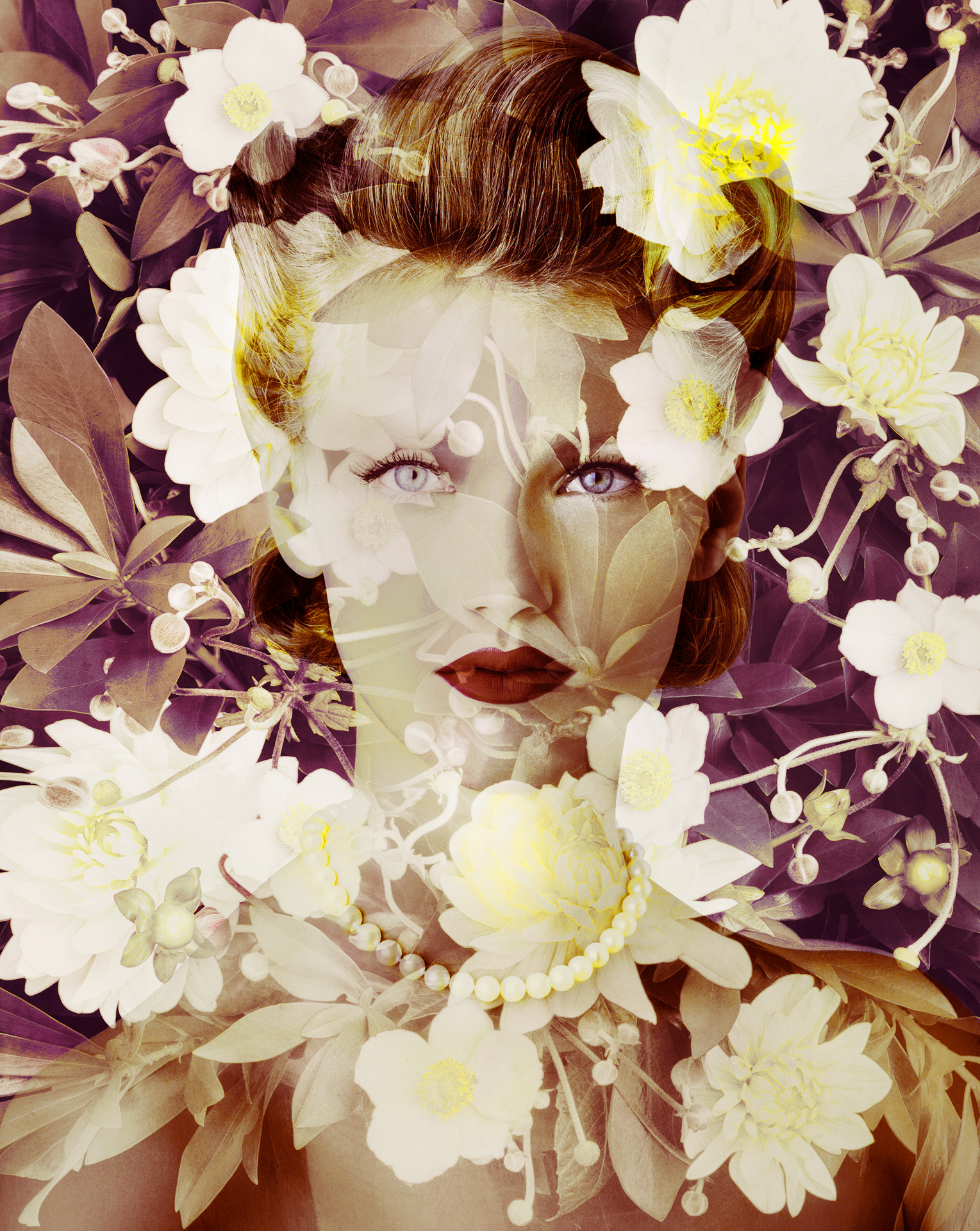 In Black-Eyed Susan (2011) the boundary between woman and flower dissolves. Faces merge with petals, skin echoes the curve of a leaf, and identity slips into ornament. Valérie BELIN stages a metamorphosis — where the floral grows through the face. The vegetal and the human share the same surface, interlaced in a fragile, luminous balance. What emerges is a being in bloom — a symbiotic form, born of both artifice and life.