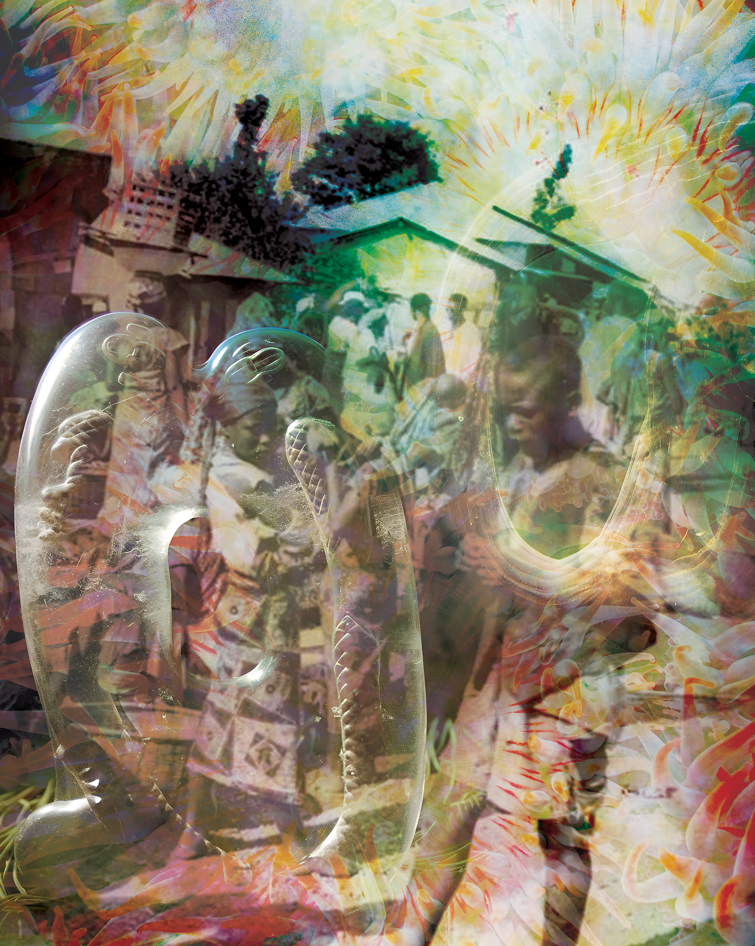 Josèfa NTJAM is a multidisciplinary artist whose work weaves together sculpture, photomontage, video, installation, performance, and writing.