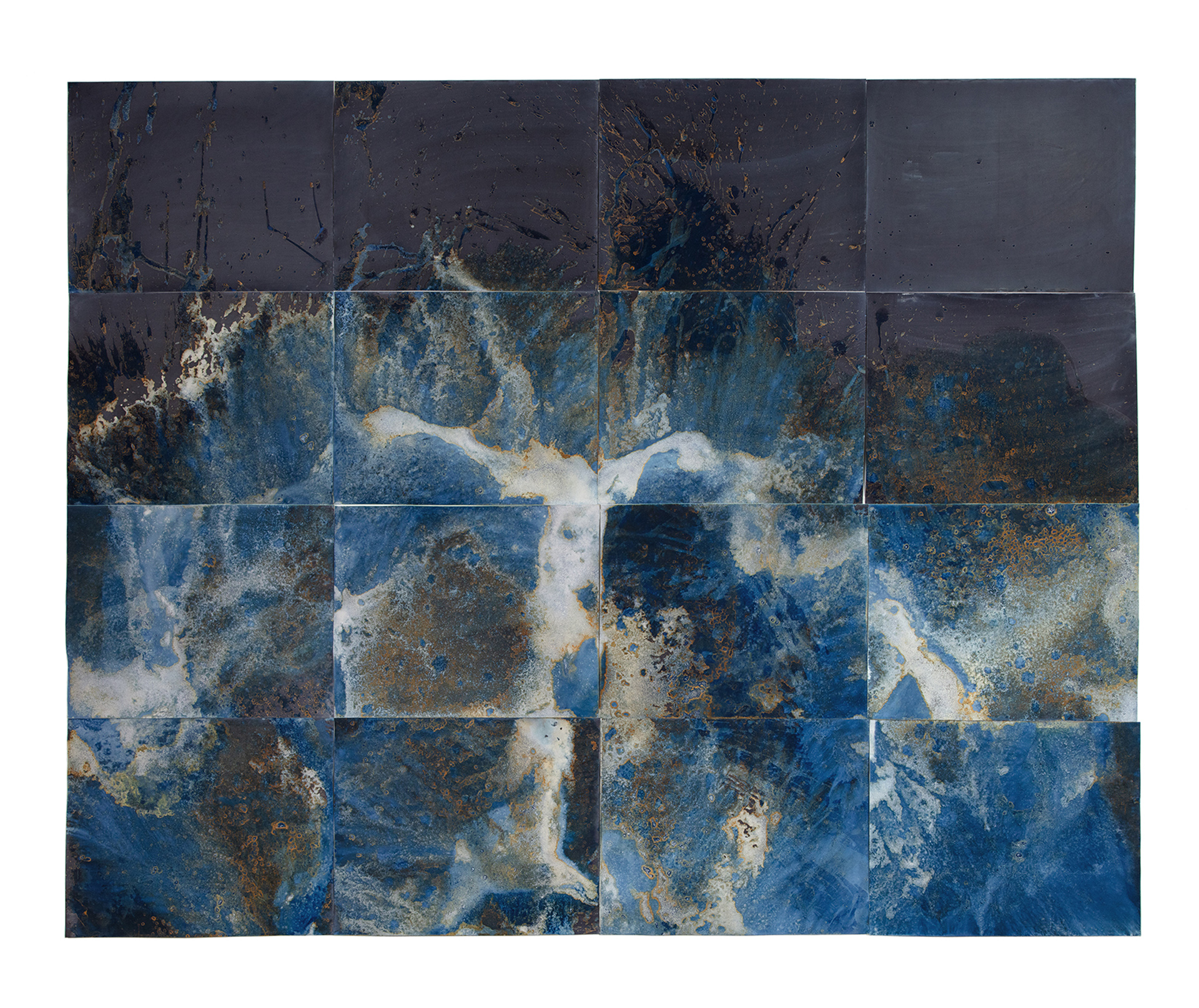 Meghann RIEPENHOFF is an American artist who creates large-format, camera-less cyanotypes by placing chemically treated paper in natural settings—shorelines, snowfields, rivers—where light, wind, and water interact directly with the surface. Her method becomes a collaboration with nature, generating fluid, ever-changing patterns that speak to impermanence and our ties to the environment.